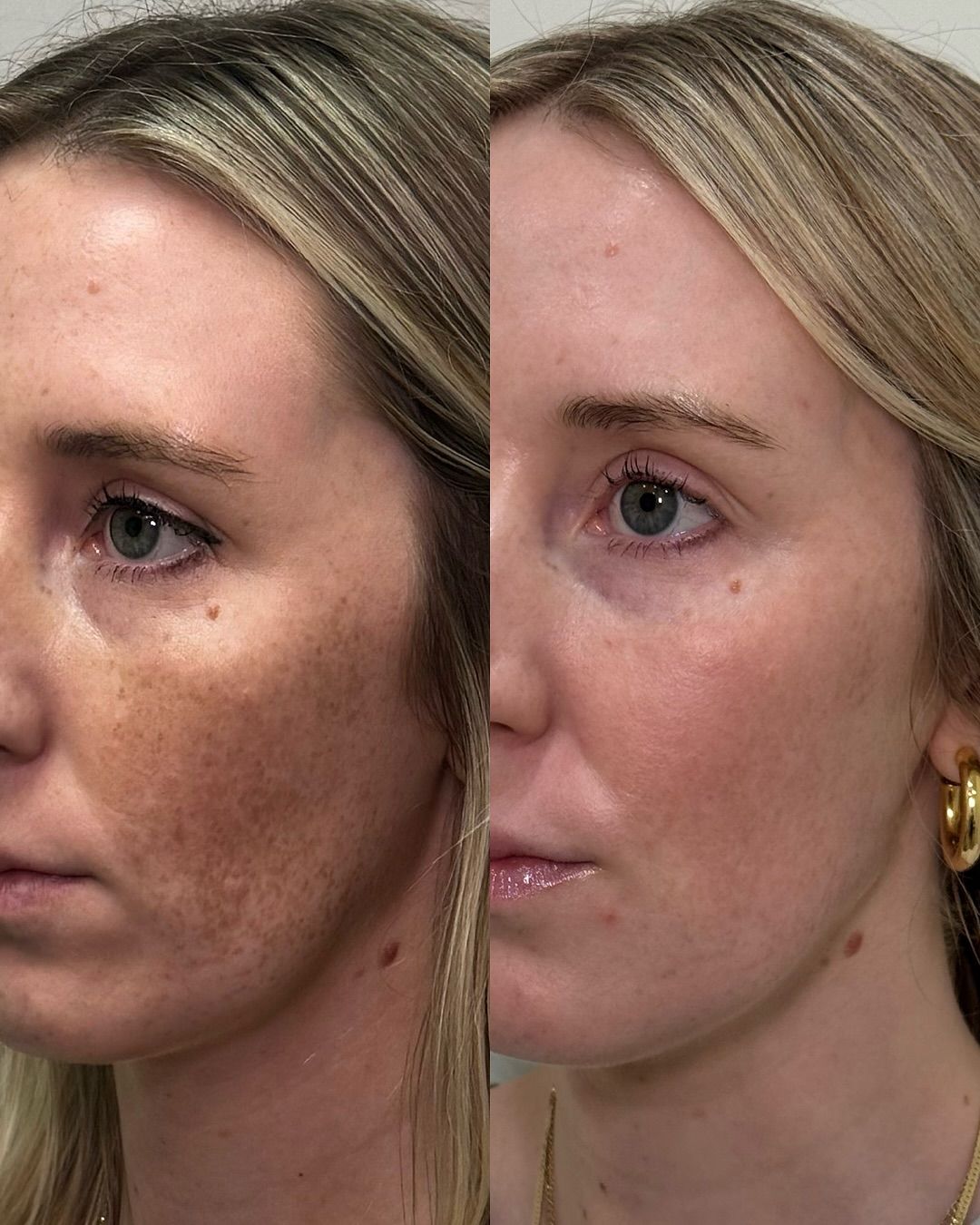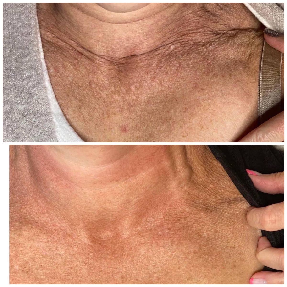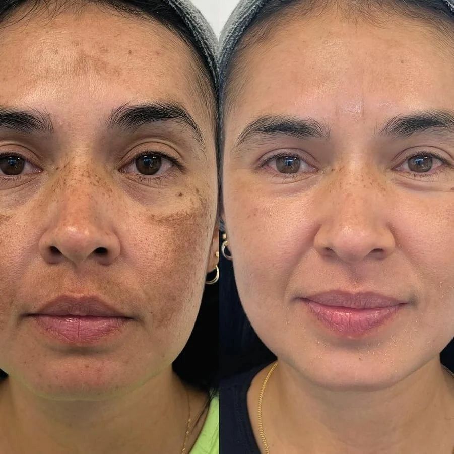A maioria das clientes nota a pele mais hidratada e viçosa na primeira semana. O clareamento gradual das manchas ocorre com o uso contínuo (geralmente a partir de 21 dias).